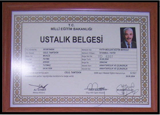 Ustalık ve Kalfalık Belgeleri İle İstanbul Anahtarcılar ve Çilingirler derneğinin 560 Nolu Üyeliği Nezdinde Çalışırlar